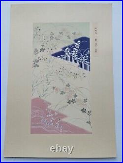 ARTIST: Yamamoto Sekkei (SEKKA YAMAMOTO). AGE: APPROX 100 years old. MEDIUM: WOODBLOCK PRINT (INK ON PAPER) NISHIKI-E. SIZE: 16 inches by 10.5 inches (41 cm X 27 cm). GENRE: JAPANESE PATTERN DESIGNS. CONDITION: (see detailed pictures) Some have stains, foxing. DESCRIPTION: deluxe printing techniques, metallic pigments, splashed gofun, etc. Were used in the making of many of the prints in this series. COMMENTS: BEAUTIFUL COLORS, GREAT IMPRESSION.